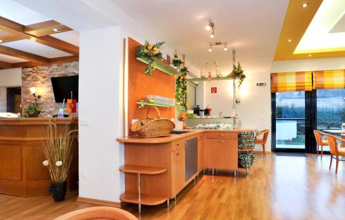 Na dobry początek dnia pensjonat zaprasza na obfite śniadanie w formie bufetu, które jest podawane w jasnej i nowocześnie urządzonej sali śniadaniowej. W odległości 300 metrów od pensjonatu Martinihof znajduje się restauracja. Do dyspozycji Gości jest również przytulna czytelnia.