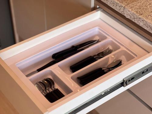 Oferta obiektu obejmuje sypialnię (1) z klimatyzacją, jadalnię, a także kuchnię z pełnym wyposażeniem, w tym lodówką. W apartamencie zapewniono ręczniki i pościel.