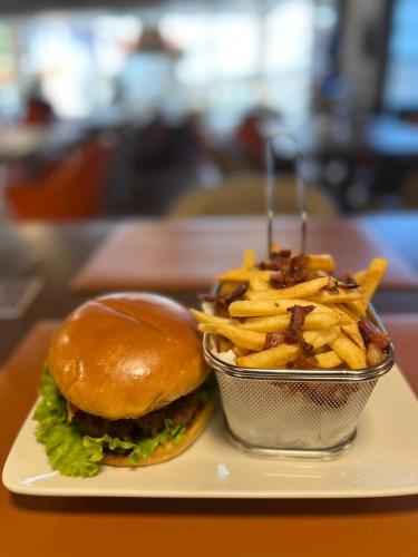 Guests enjoy a daily buffet breakfast with fresh fruits, juice, breads and cakes. Dining options can be found right across the street from the hotel.