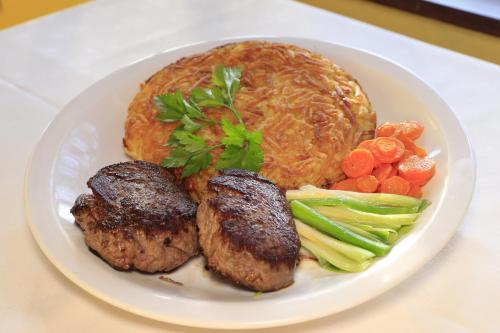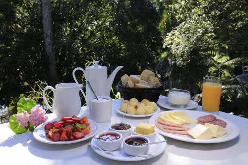 The restaurant at Auberge Suisse Pousada serves a full menu which includes vegetables grown on-site. The Pousada also has its own small farm which provides the restaurant with milk and eggs.