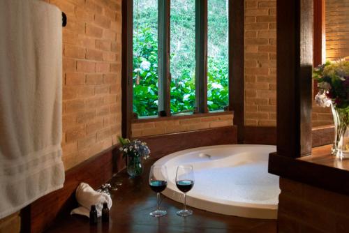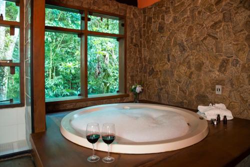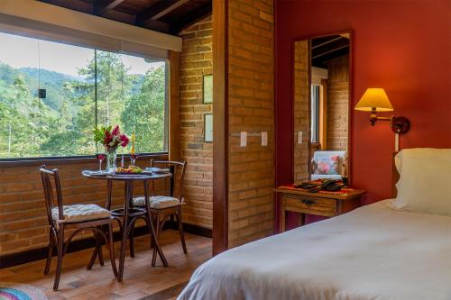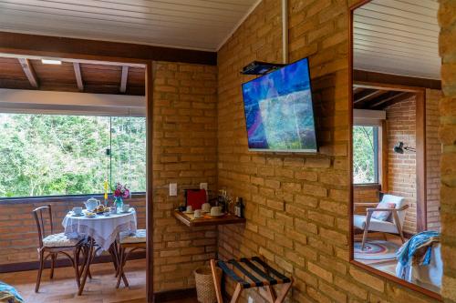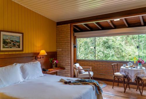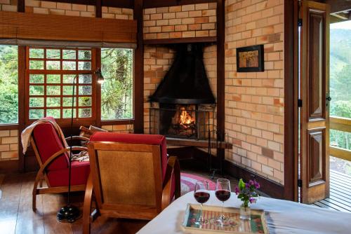 In a circular room warmed by the fireplace, guests enjoy buffet breakfast with forest views. It includes fresh fruits and homemade cakes and jams. Regional dishes are also available, and additional dining options are found at Visconde de Mauá village, 3 km away.