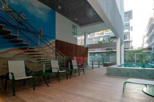 Featuring air-conditioned accommodation with a private pool, CoberturaDuplex, 1quadra da Praia em Jurerê AW4391 is located in Florianópolis. The property is situated 200 metres from Jurere Beach, less than 1 km from Jurerê Tradicional and 2 km from Canajure Beach. Private parking can be arranged at an extra charge.