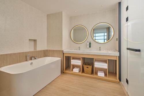 Oferta obiektu Hilton Garden Inn Zhuhai Jinan University położonego w miejscowości Zhuhai obejmuje ogród, wspólny salon, taras oraz bezpłatne Wi-Fi we wszystkich pomieszczeniach. Oferta obiektu obejmuje obsługę pokoju. Na miejscu znajduje się również restauracja. Obiekt jest idealnym wyborem dla niepalących. Odległość ważnych miejsc od obiektu: Fort Monte – 10 km.