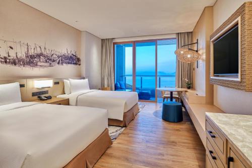 Obiekt DoubleTree by Hilton Shanwei usytuowany jest przy plaży w miejscowości Shanwei i oferuje taras oraz bar. Do dyspozycji Gości przygotowano takie udogodnienia, jak restauracja, klub dla dzieci, obsługa pokoju oraz bezpłatne Wi-Fi. Obiekt zapewnia sezonowy odkryty basen, kryty basen, centrum fitness oraz ogród.