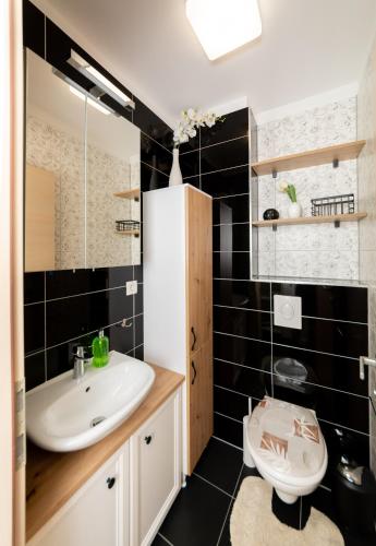 W apartamencie do dyspozycji gości przygotowano kilka sypialni (2), jadalnię, kuchnię z lodówką oraz salon. Wyposażenie obejmuje też telewizor z płaskim ekranem.