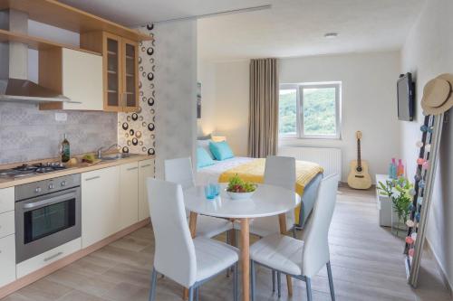 W apartamencie zapewniono taras, 1 sypialnię, salon z telewizorem z płaskim ekranem, kuchnię ze standardowym wyposażeniem, takim jak lodówka i piekarnik, a także 1 łazienkę z prysznicem. Goście mogą podziwiać widok na góry. W apartamencie zapewniono ręczniki i pościel.