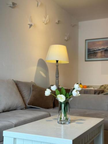 W apartamencie zapewniono taras, sypialnię (1), salon z telewizorem z płaskim ekranem, kuchnię ze standardowym wyposażeniem, takim jak lodówka i zmywarka, a także łazienkę (1) z prysznicem. Goście mogą podziwiać widok na morze. W apartamencie zapewniono ręczniki i pościel.