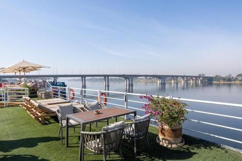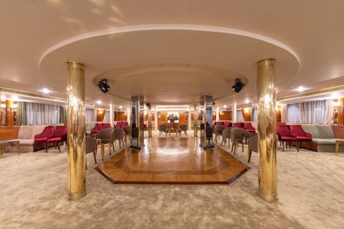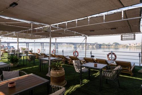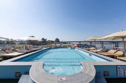 Obiekt Magic I Nile Cruise Deluxe Boat The scheduled departure is on Saturday for a 7-day Nile cruise, położony w miejscowości Luksor, oferuje bar, zakwaterowanie w pokojach dla niepalących, a także bezpłatne Wi-Fi we wszystkich pomieszczeniach. Odległość ważnych miejsc od obiektu: Colossi of Memnon – 12 km. W okolicy znajdują się ciekawe miejsca takie jak: Luxor Train Station ( 12 km), Medinet Habu Temple ( 13 km), Deir el-Medina ( 14 km). Oferta hotelu obejmuje centrum fitness, odkryty basen i taras. Na miejscu działa też restauracja.