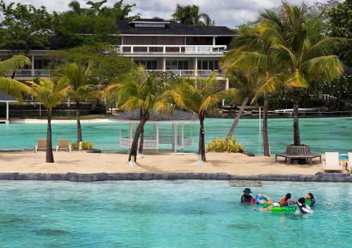 Tired of resorts that look just like city hotels in your hometown? Plantation Bay is built like a village, with most rooms directly fronting an extensive private lagoon and artificial beaches. Eye-soothing low-rise architecture. Comfortable, well-appointed, spacious (46 square meters, 490 square feet) rooms with elegant bathrooms (separate tub and shower, large counter area). Romantic King 4-Posters in some rooms, practical two Queens in others.