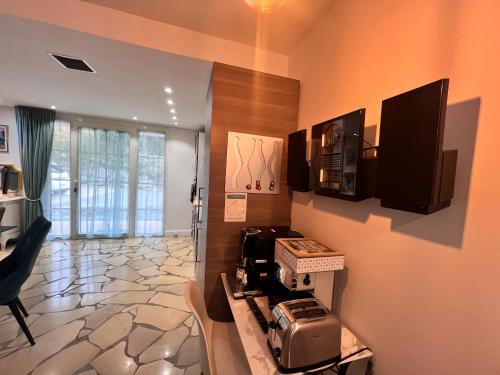 W apartamencie zapewniono kilka sypialni (2), łazienkę (1), pościel, ręczniki, jadalnię oraz kuchnię z pełnym wyposażeniem. Do dyspozycji Gości jest także telewizor z płaskim ekranem z dostępem do kanałów satelitarnych oraz taras z widokiem na basen.