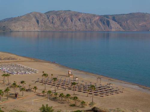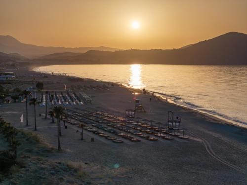 Piaszczysta plaża przed ośrodkiem rozciąga się na ponad 10 km, a wspaniałe jezioro Kournas jest oddalone o 2 km.