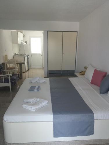 Studios at Pegasus hotel are air conditioned and feature marble floors. Each unit includes an LCD satellite TV and a well-equipped kitchenette with mini fridge. A private bathroom with shower is standard.