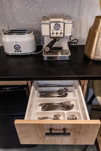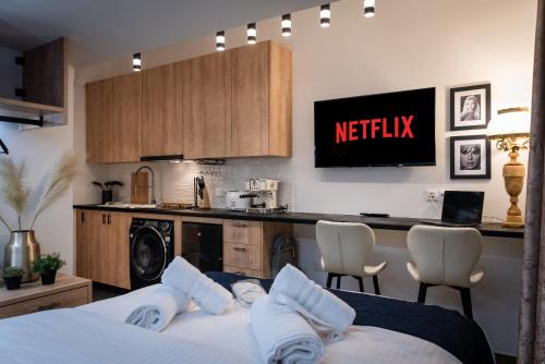 W apartamencie zapewniono sypialnię (1), kuchnię z lodówką i płytą kuchenną, a także łazienkę (1) z prysznicem, bezpłatnym zestawem kosmetyków oraz pralką. W apartamencie zapewniono ręczniki i pościel.