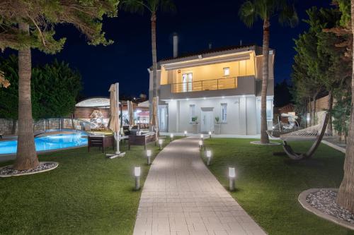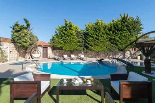 Obiekt Serenity Bliss Villa położony jest w miejscowości Kato Gouves i oferuje sezonowy odkryty basen, centrum fitness, saunę, a także taras z widokiem na góry i widokiem na basen. Oferta willi obejmuje prywatny basen, ogród oraz bezpłatny prywatny parking.