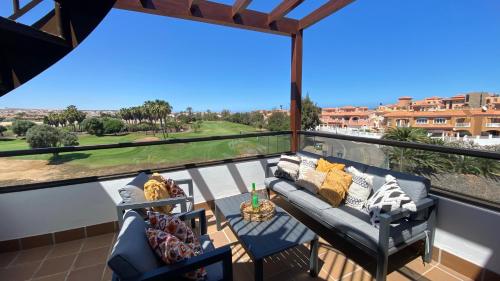 Sunny Luxury Apartment with two great sunny - level terraces, two swimming pools, in a new complex Pueblo Majorero, close to Fuerteventura Golf Club, next to the beach , Atlantico Shopping Mall and casino in Caleta de Fuste