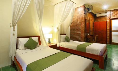 Featuring traditional Javanese architecture amidst Balinese rice fields, the spacious villas have a semi open living area with rustic wood interiors. A well equipped kitchen and a dining area are available. En suite bathroom comes with a bathtub, shower and free bath amenities.