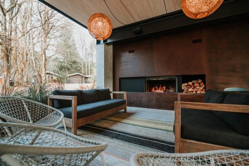 Located on 5 acres of woodland at the convergence of 2 rivers, this pet-friendly resort in Brackendale, British Columbia, offers a view of the Tantalus Mountains. Each guest room includes a gas fireplace.