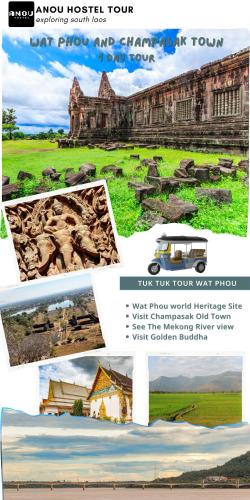 Obiekt ANOU HOSTEL, usytuowany w miejscowości Pakxé, oferuje ogród, bezpłatny prywatny parking oraz wspólny salon. Odległość ważnych miejsc od obiektu: Wat Phabat – 500 m. W okolicy znajdują się ciekawe miejsca takie jak: Champasak Stadium ( 1,8 km), International bus station KM 2 ( 2,1 km), Phu Salao Golden Buddha ( 8,8 km). Na terenie hostelu działa tajska restauracja. Goście mogą także korzystać z bezpłatnego WiFi we wszystkich pomieszczeniach.