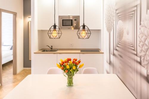 W apartamencie zapewniono odtwarzacz DVD, kuchnię z lodówką, mikrofalówką i płytą kuchenną, salon, jadalnię, sypialnię (1), a także łazienkę (1) z prysznicem. W apartamencie zapewniono ręczniki i pościel.