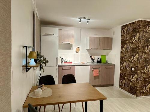 W apartamencie do dyspozycji gości przygotowano sypialnię (1) oraz kuchnię. Wyposażenie obejmuje też telewizor z płaskim ekranem.