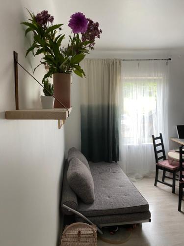 W apartamencie do dyspozycji gości przygotowano sypialnię (1), aneks kuchenny ze standardowym wyposażeniem, takim jak lodówka i płyta kuchenna, a także łazienkę (1) z prysznicem. Wyposażenie obejmuje także pralkę oraz telewizor z płaskim ekranem.