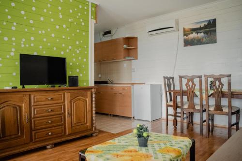 W domu wakacyjnym zapewniono taras, kilka sypialni (2), salon z telewizorem z płaskim ekranem, kuchnię ze standardowym wyposażeniem, takim jak lodówka i piekarnik, a także łazienkę (1) z prysznicem. Goście mogą podziwiać widok na góry. W domu wakacyjnym zapewniono ręczniki i pościel.
