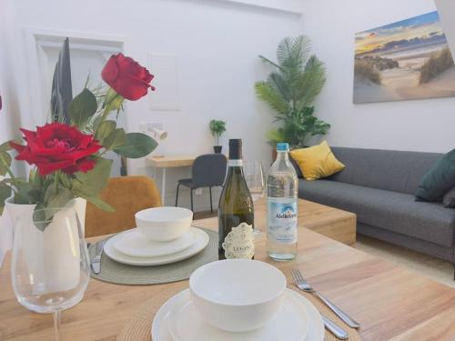 Oferta apartamentu obejmuje sypialnię (1), salon, kuchnię z pełnym wyposażeniem, w tym lodówką i ekspresem do kawy, a także łazienkę (1) z prysznicem oraz bezpłatnym zestawem kosmetyków. W apartamencie zapewniono ręczniki i pościel.