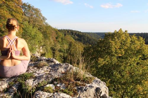A spa area and an indoor pool are featured at the family-owned Hotel Traube Revital in the heart of the scenic Schwäbische Alb countryside.