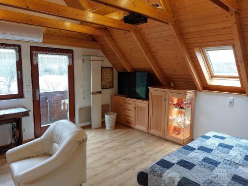 W apartamencie zapewniono sypialnię (1), łazienkę (1), pościel, ręczniki, jadalnię oraz kuchnię z pełnym wyposażeniem. Do dyspozycji Gości jest także telewizor z płaskim ekranem z dostępem do kanałów satelitarnych oraz taras z widokiem na ogród.