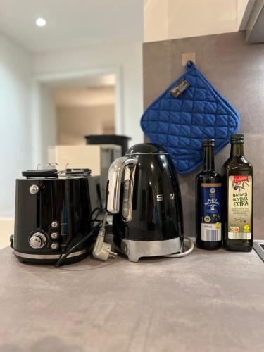 W apartamencie do dyspozycji gości przygotowano taras, sypialnię (1), salon oraz aneks kuchenny z doskonałym wyposażeniem, w tym lodówką i zmywarką. W apartamencie zapewniono ręczniki i pościel.