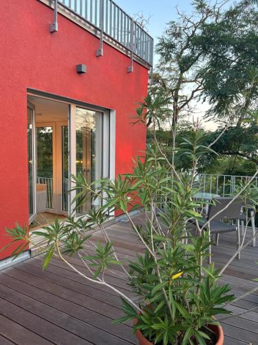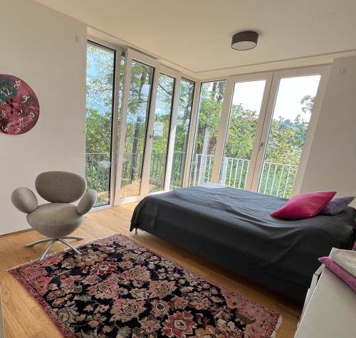 Obiekt Luxuswohnung in Villa mit fantastischem Blick oferuje balkon oraz widok na miasto. Do dyspozycji Gości jest również ekspres do kawy. Odległość ważnych miejsc od obiektu: Pałac w Karlsruhe – około 7,6 km. Obiekt zapewnia taras oraz bezpłatny prywatny parking. W okolicy w odległości 7,2 km znajduje się Teatr w Baden.