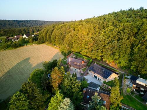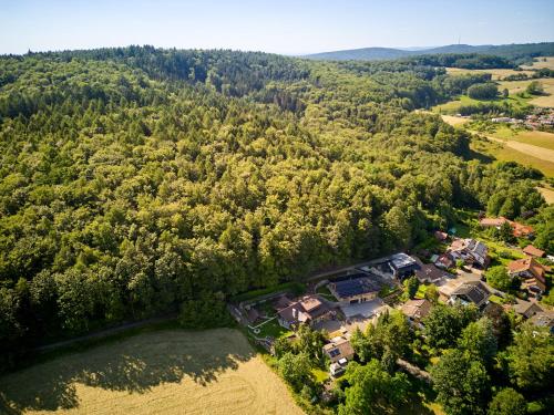 Obiekt Eveningwood - DTV 5 Sterne Luxus Hüttenparadies, Blockhaus, położony w miejscowości Heimbuchenthal, oferuje patio oraz bezpłatne Wi-Fi. Oferta domu wakacyjnego obejmuje ogród oraz bezpłatny prywatny parking.