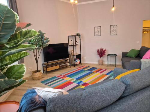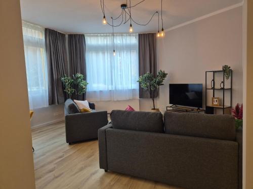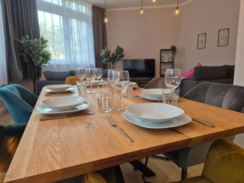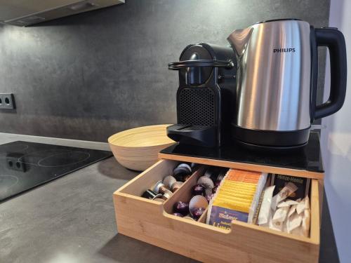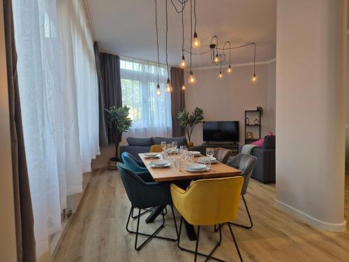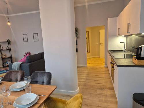 Oferta apartamentu obejmuje sypialnię (1), salon, kuchnię z pełnym wyposażeniem, w tym lodówką i ekspresem do kawy, a także łazienkę (1) z prysznicem oraz bezpłatnym zestawem kosmetyków. W apartamencie zapewniono ręczniki i pościel.