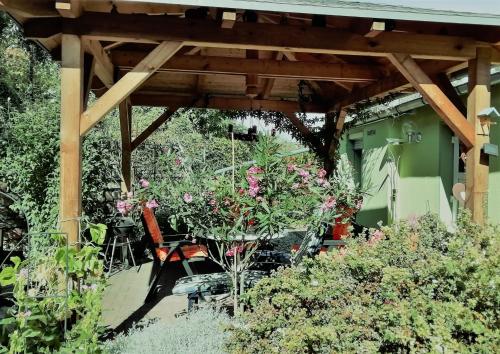 W domu wakacyjnym zapewniono taras, sypialnię (1), salon z telewizorem z płaskim ekranem, aneks kuchenny ze standardowym wyposażeniem, takim jak lodówka i piekarnik, a także łazienkę (1) z prysznicem. Goście mogą podziwiać widok na ogród. W domu wakacyjnym zapewniono ręczniki i pościel.