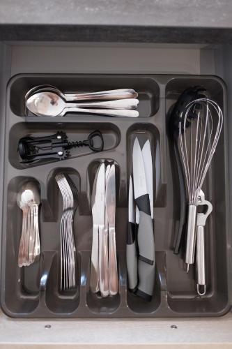 Oferta apartamentu obejmuje sypialnię (1), salon, kuchnię z pełnym wyposażeniem, w tym lodówką i ekspresem do kawy, a także kilka łazienek (2) z prysznicem oraz bezpłatnym zestawem kosmetyków. W apartamencie zapewniono ręczniki i pościel.