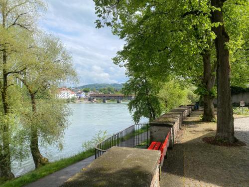 Obiekt NEU Deluxe Suite Münsterblick, Maisonette, Kingsize Bett, Küche, Netflix, Aussicht, E-Kamin położony jest w miejscowości Bad Säckingen i oferuje widok na rzekę. Odległość ważnych miejsc od obiektu: Rzymskie miasteczko Augusta Raurica – 30 km, Muzeum Schaulager – 38 km. W apartamencie zapewniono bezpłatne Wi-Fi. Z okien roztacza się widok na miasto i widok na góry.