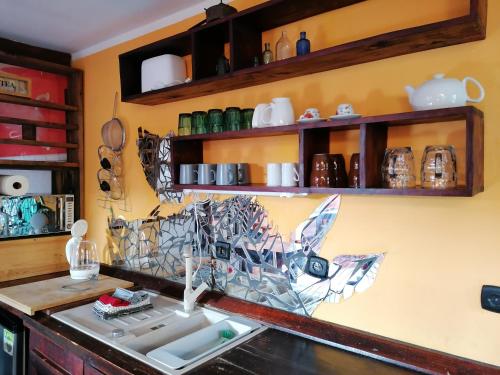 Oferta domu wakacyjnego obejmuje sypialnię (1), salon, kuchnię z pełnym wyposażeniem, w tym lodówką i ekspresem do kawy, a także łazienkę (1) z prysznicem oraz suszarką do włosów. W domu wakacyjnym zapewniono ręczniki i pościel.
