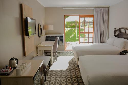 Obiekt The Caledon Hotel and Spa położony jest w miejscowości Caledon i zapewnia odkryty basen, centrum fitness, ogród oraz wspólny salon. Oferta obiektu obejmuje całodobową recepcję. Na miejscu znajduje się również restauracja, kasyno i taras. Obiekt zapewnia bar.