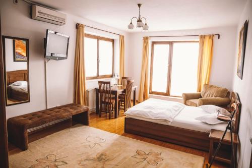 The individually decorated rooms offer air conditioning, cable TV, a work desk and a private bathroom with a shower, hairdryer and free toiletries. Some rooms offer a unique view of the Danube and the Dobrogea Mountains.