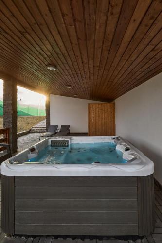 Zaplecze odnowy biologicznej obiektu Silver Cottage obejmuje saunę i wannę z hydromasażem.