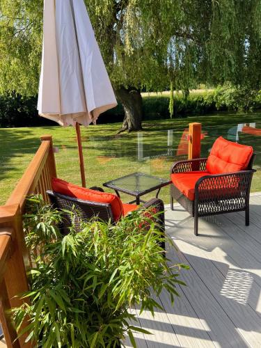 Obiekt Riverbank Lodge oferuje bar, balkon oraz widok na ogród. Odległość ważnych miejsc od obiektu: Royal Shakespeare Company – około 2,7 km. Oferta domku obejmuje ogród, sprzęt do grillowania, bezpłatne Wi-Fi oraz bezpłatny prywatny parking.