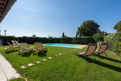 W willi zapewniono balkon, kilka sypialni (5), salon z telewizorem z płaskim ekranem, aneks kuchenny ze standardowym wyposażeniem, takim jak lodówka i zmywarka, a także kilka łazienek (4) z bidetem. Goście mogą podziwiać widok na ogród. W willi zapewniono ręczniki i pościel.
