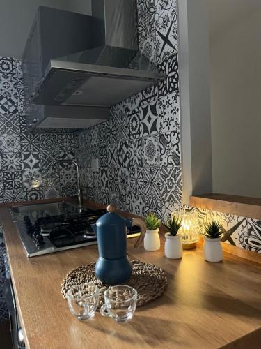 Oferta apartamentu obejmuje sypialnię (1), salon, kuchnię z pełnym wyposażeniem, w tym lodówką i ekspresem do kawy, a także łazienkę (1) z bidetem oraz prysznicem. W apartamencie zapewniono ręczniki i pościel.