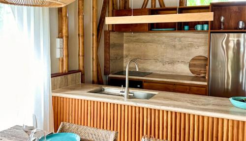 Do dyspozycji Gości jest 9 domków w stylu apartamentów typu studio. Wszystkie są wyposażone w łóżko z baldachimem i obejmują aneks kuchenny. Każdy domek oferuje ponadto umeblowany balkon z widokiem na ocean oraz wannę i prysznic na świeżym powietrzu.