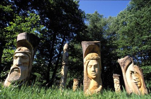 Galindia is a one-of a kind resort, stylized as a Galindian tribe keep and located on the shores of Bełdany Lake. It features rustic style rooms with wicker and wood furniture and stylish bathrooms.