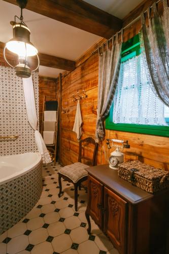 Set in Łukawica, within 27 km of Horyniec Zdroj Train Station, Chata w Leśnych Pieleszach z sauną & balią z jacuzzi - na wyłączność offers accommodation with air conditioning. This property offers access to a terrace, free private parking and free WiFi. Guests can use the spa and wellness centre with a sauna, hot tub, and wellness packages, as well as a garden.
