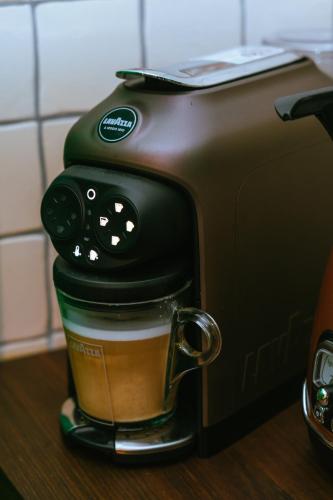 The holiday home comes with 2 bedrooms, a fully equipped kitchen with an oven and a microwave, and 1 bathroom with a hot tub, bathrobes and a washing machine. A private entrance leads guests into the holiday home, where they can enjoy some fruits and chocolates or cookies. There is also a seating area and a fireplace.