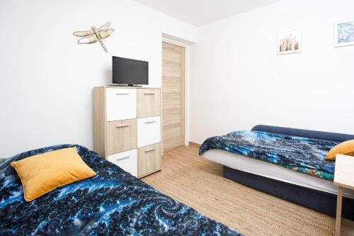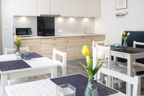 Set in Łazy, Zacisze Sosnowe offers beachfront accommodation 200 metres from Łazy Beach and provides various facilities, such as a garden and barbecue facilities. This holiday home offers free private parking and a shared kitchen. Featuring family rooms, this property also provides guests with a sun terrace.