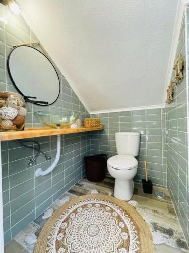 The air-conditioned holiday home is composed of 2 separate bedrooms, a living room, a fully equipped kitchen with kitchenware, and 2 bathrooms. A flat-screen TV is available.