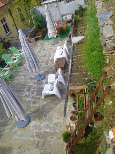 The 1st floor of Casas Botelho Elias has access to a terrace where guests can sunbathe and shower afterwards.